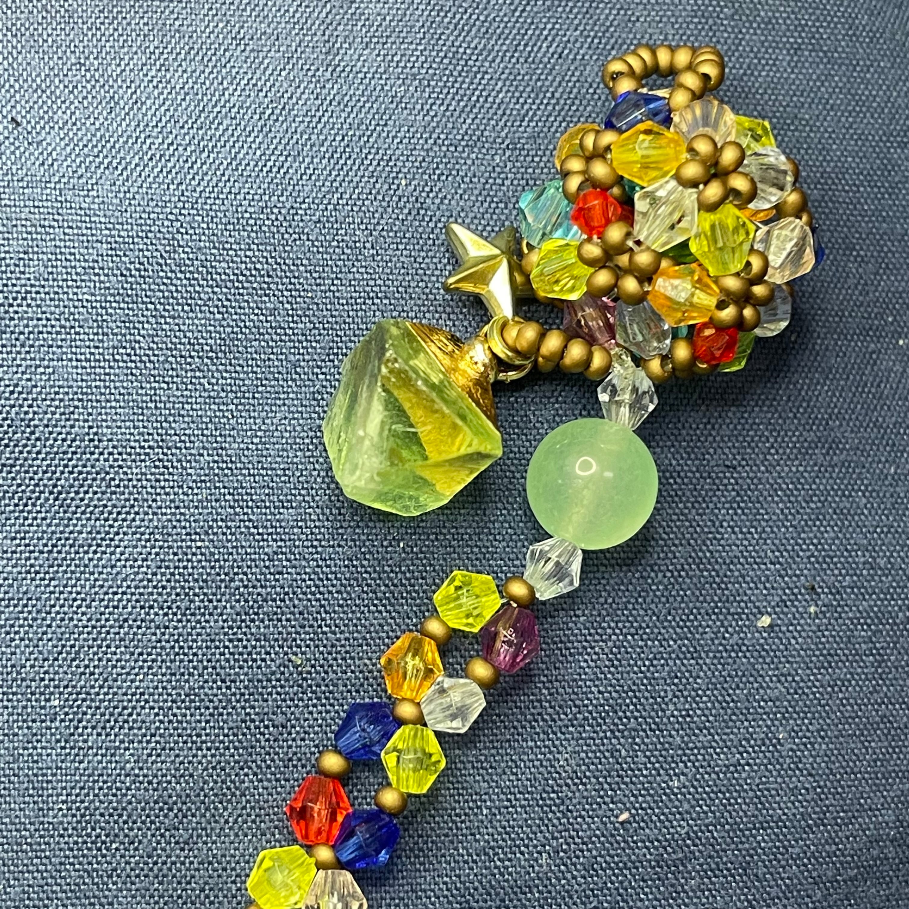 星に願いを・ビーズドーム・は、ぼんぼりをイメージしたモチーフとして、トップにイーズドーム、中央部に天然石そして、ビーズの垂れをあしらった一本糸ベースの逸品です。 翡翠は、緑色が斬新な天然石で、癒し・ヒーリングの効果と開運、それと集中力を高めるそんな天然石です。 開運のアイテムは持つ人を幸せに成功裡へと導くでしょう。