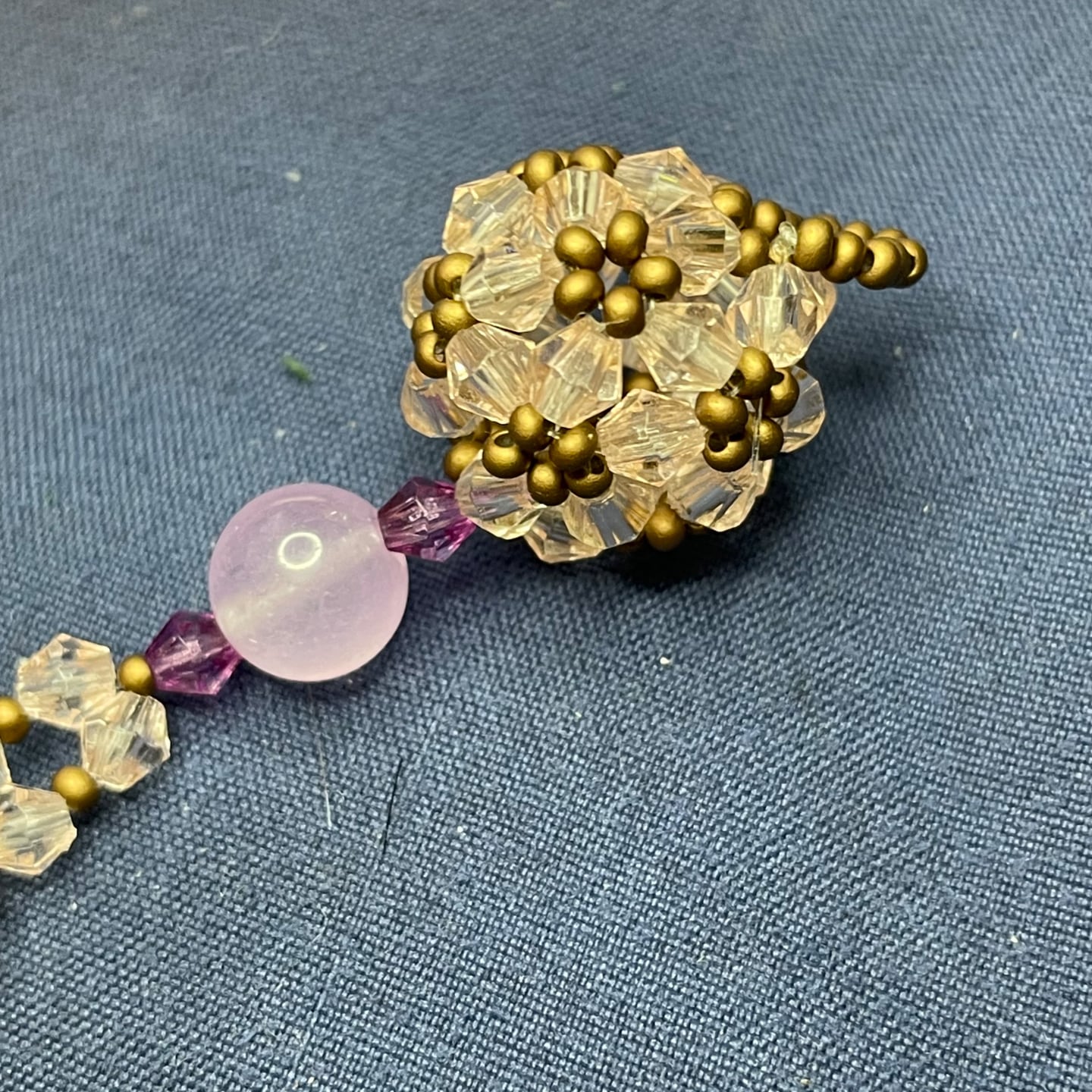 星に願いを・ビーズドーム・は、ぼんぼりをイメージしたモチーフとして、トップにイーズドーム、中央部に天然石そして、ビーズの垂れをあしらった一本糸ベースの逸品です。 乙女座の誕生石であるこの天然石は、女性を輝かせると共に、必ずと言っていいほど相手を見返させる、そんな力のある開運の天然石。帰路に立ったり、誰かのために陥った環境を見返す効果が期待できる勝利を呼ぶ天然石。