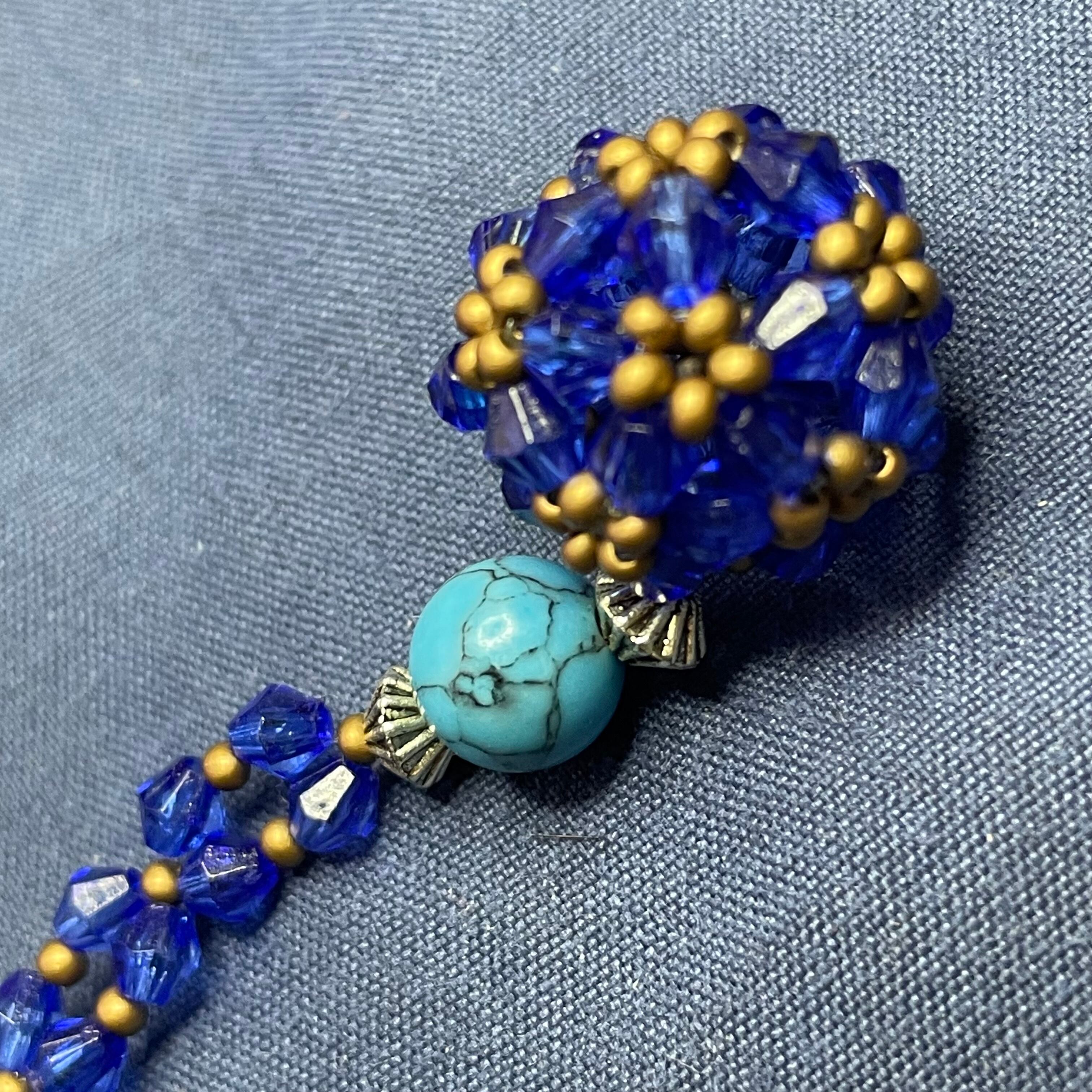 星に願いを・ビーズドーム・は、ぼんぼりをイメージしたモチーフとして、トップにイーズドーム、中央部に天然石そして、ビーズの垂れをあしらった一本糸ベースの逸品です。